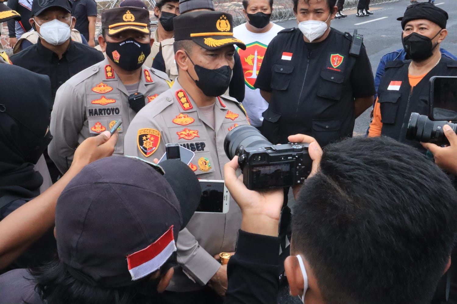 "Saya juga mengucapkan banyak terimakasih atas kegiatan penyampaian aspirasi dari kelompok Bonek dan Buruh yang telah berlangsung dengan kompak dan tertib". Ujar Kapolrestabes Surabaya.