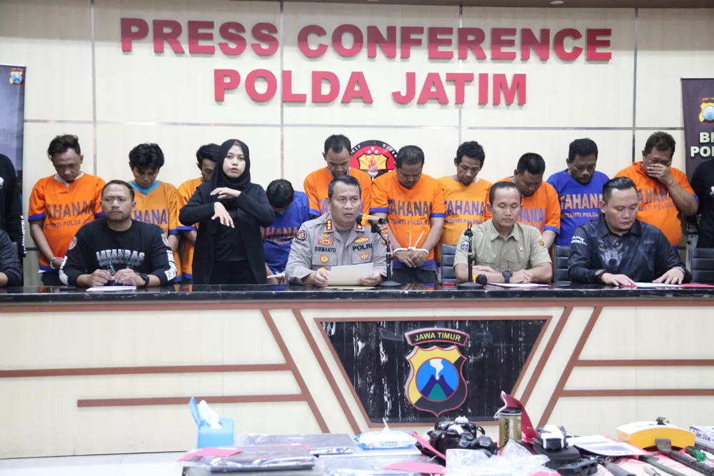 Disampaikan Kabid Humas Polda Jatim, Kombes Pol Dirmanto, yang didampingi oleh Wakil Direktur Reserse Kriminal Umum (Wadirreskrimsus) Polda Jatim, AKBP Piter Yanottama, dan Kepala Subdirektorat III Bagian Penyelidikan Kejahatan Umum Polda Jatim, AKBP Lintar Mahardhono, dalam sebuah konferensi pers pada hari Selasa (15/8/2023).